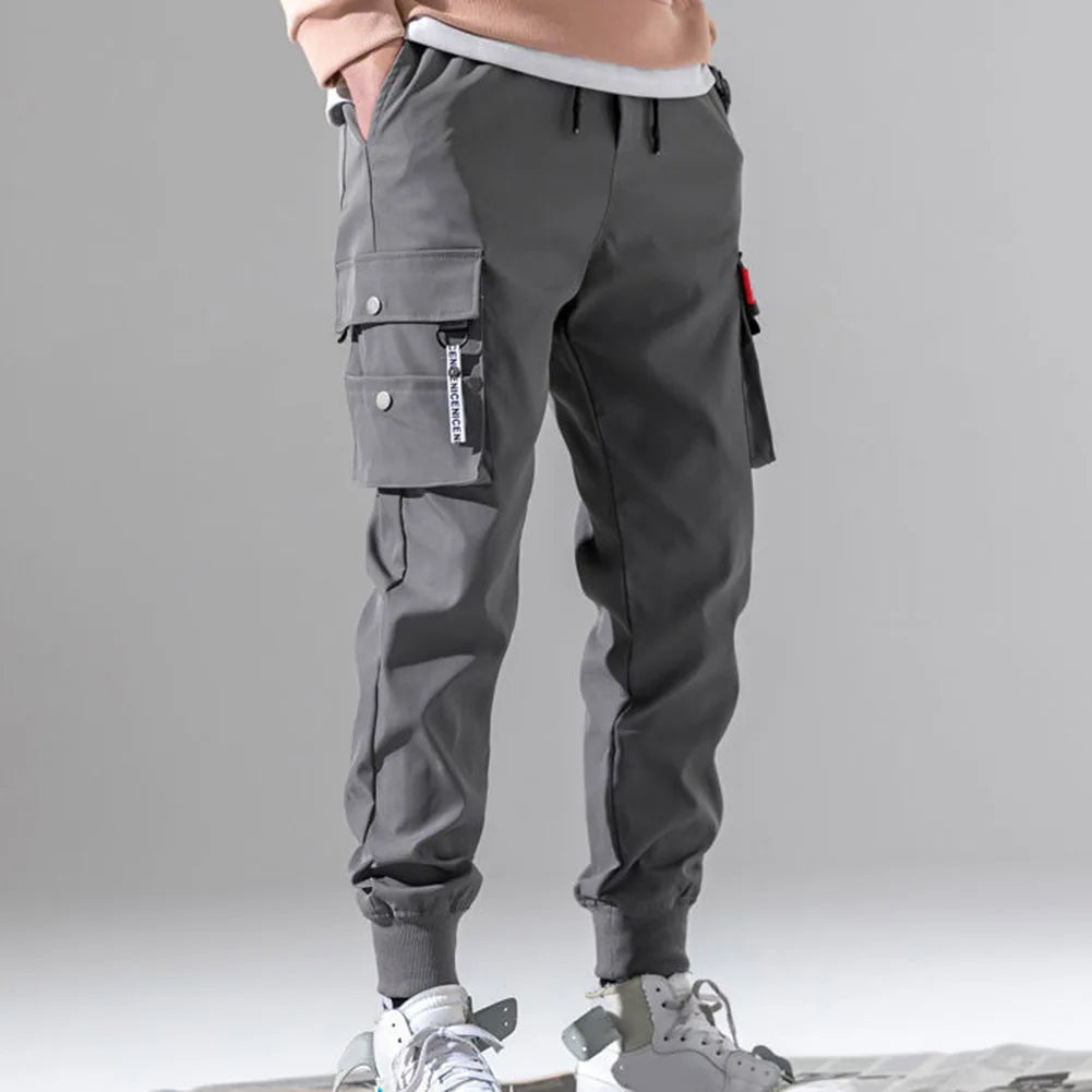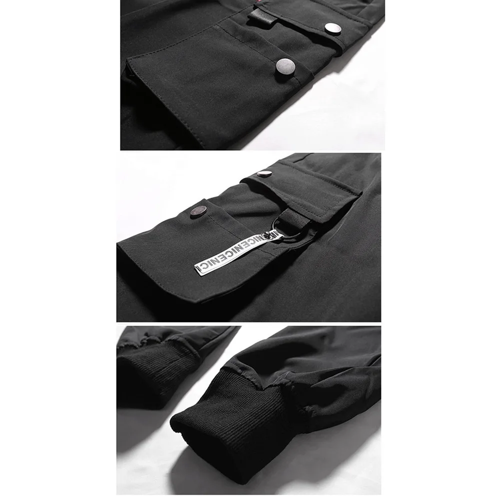 Solid Cargo Pants Multi Pockets Hip Hop Joggers Trousers